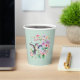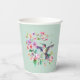 Ce design présente des colibris aquarelle et une couronne tropicale fleurie avec des fleurs feuilles vertes violettes et roses sur un arrière - plan vert sauge clair personnalisé.