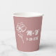 Initiales de mariée et de chambre Floral Design Mariage rose poussiéreux tasses en papier rose