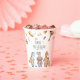 Cute Anniversaire de enfant Party Tableware Paper Cups - Le design boho dispose de 3 adorable aquarelle safari animaux africains jouant des instruments de musique, le nom des enfants, l'âge et la date de célébration.