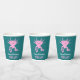 Add your own custom message to create personalized party supplies for birthday parties and more. These paper cups feature my cute cartoon style illustration of an axolotl salamander in bright pink set against a teal colored backed with your text in white and pink lettering below. The graphic and text appear on both sides of the cup. These adorable paper cups are perfect for kids (of any age!) who love axolotls and other unusual animals.