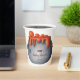 Adorable a baby is brewing Halloween gender neutral baby shower paper cups with an illustration of a witch cauldron with a bubbling orange potion. Illustrated and designed by Patricia Alvarez.