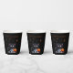 Cute Drôle Kitten Noir Halloween tasses en papier. Un trivet amusant et éffrayant de tour ou de plaisir avec un chaton aux yeux larges, mignon mais effrayant portant un costume de fantôme pur! L'expression ludique et la tenue fantaisiste du chaton ajoutent une touche de charme à Halloween. Ajoutez votre propre texte ou utilisez "Happy Halloween".