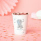 adorable aquarelle bleu et gris éléphant bébé, douce petite cacahuète avec craie bleu poussiéreux coeur. Vous pouvez customiser ces élégantes tasses de papier baby shower modernes avec votre propre texte.