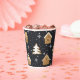 Ajoutez une touche de fantaisie à vos festivités de vacances avec nos mignons Gingerbread Village Fir Trees Blue Christmas Paper Cups. Dotées d'un joli art populaire moderne et festif inspiré des modèles nordiques, norvégiens et scandinaves, ces tasses représentent un charmant village de pain d'épices avec des maisons en pain d'épices nichées au milieu de pins et de sapins de Noël. L'agréable aquarelle rustique vintage rétro évoque un merveilleux pays d'hiver douillet rempli de biscuits de Noël, accents Candyland et des flocons de neige en chute libre. Dans une charmante palette de couleurs bleu foncé, marron et blanc, ces tasses sont parfaites pour un rassemblement festif !