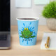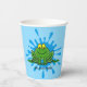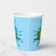 Cute Green Frog Design Paper Cups avec texte personnalisable et couleur arrière - plan. Le bleu "splash" peut être enlevé si désiré.