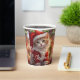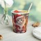 Tasse en papier avec un chaton mignon en tenue de Noël festive. (s'il vous plaît ne faites pas ça à votre chat à la maison)