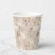 Tasses en papier avec un motif de style nordique mignon. Pins d'hiver, ours, rennes et écureuils. Couleur brun clair.
