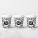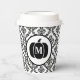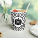 Ce design de tasse de fête présente un citrouille noir sur un arrière - plan damassé noir et blanc. Vous pouvez personnaliser avec votre initial.