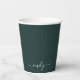 Gobelets En Papier Dark Green Modern Script Nom du monogramme