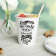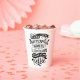 Cette tasse de boisson chaude est munie d'un lettrage fantaisiste à la main qui dit "Derrière chaque femme, il y a une quantité importante de café." sur un arrière - plan blanc. Le lettrage présente des échelles décoratives et des tourbillons ornementaux.