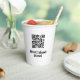 Hotel Cafe Paper Cup "avec QR Code. Montrez votre propre conception de code QR. Laissez d'autres scanner votre code QR Avec leurs téléphones portables ! Remplacez l'image par votre propre code QR téléchargé. Inclut le nom de l'établissement. Noir et blanc. Il existe différents sites web qui vous permettent de créer et de télécharger gratuitement des codes QR. Les codes QR peuvent être créés pour des sites Web, des courriels, le Wi-Fi, des cartes Vards et de nombreuses autres utilisations. Un exemple est https://www.qr-code-generator.com