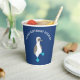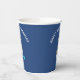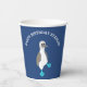 Ces tasses personnalisées de fête d'anniversaire en papier sont prêtes à être personnalisées avec votre propre message. Ils sont parfaits pour les fêtes d'anniversaire pour les amateurs d'oiseaux. Ils présentent une illustration de style dessin animé d'un joli oiseau botté aux pieds bleus dressé contre un arrière - plan bleu.