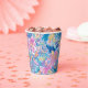 Beautiful paper cup product featuring a lively tropical bloom of pink and purple flowers with bright yellow accents, layered over swirling teal and blue paisley shapes for a rich, energetic, island‑inspired design. Perfect for birthdays, weddings, anniversary, bridal showers and more.