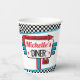 Fêtez votre prochain anniversaire spécial dans le thème intemporel du dîner des années 1950. Ne cherchez pas plus loin que ce blanc, noir, rouge et turquoise avec motif à carreaux avec une enseigne de diner classique et voiture avec votre choix de type et fille (en 3 couleurs de cheveux). Voir mes autres annonces pour diverses options de couleur de cheveux et de peau pour le type et la gal ou utilisez l'option "Cliquez pour customiser plus loin" pour afficher les autres options. Cette tasse en papier sera sûr de remuer vos invités et de vous assurer d'avoir une grande fête d'anniversaire rockin'. Visitez www.invitecentral.com pour des téléchargements numériques.