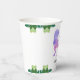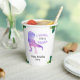 Drôle dinosaure 2ème anniversaire tasses de papier fête avec l'aquarelle rose et violet tyrannosaurus rex et feuilles verts. Personnalisez-le avec les détails de votre événement. Idéal pour une fête anniversaire préhistorique.