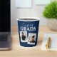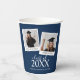 Des tasses de papier modernes pour la fête de la double graduation, qui présente 2 photos de la diplômée. Le texte de la coupe est modèle : "FÉLICITE LES ANNÉES, LEURS NOMS, L'ANNÉE DE DIPLÔME, ET LEUR NOM D'ÉCOLE OU DE COLLÈGE". Tous les styles de police et les couleurs arrière - plans peuvent être modifiés en cliquant sur le lien customiser après la personnalisation. *S'il vous plaît, envoyez-moi un message si vous avez besoin d'aide.