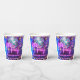 Design "Faisons la fête" avec des lumières vives néons en bleu, rose et violet, pour les fêtes d'anniversaire des filles et des femmes, parfait pour le roller, et des soirées dansantes dans le style rétro.