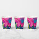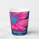 Ces gobelets en papier floral et botanique pour la douche de la mariée présentent des fleurs aquarelles en rose, violet et pêche et des feuilles dans des tons verts vifs avec un fond rose chaud. Une invitation de mariage florale colorée parfaite