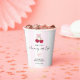 Joli thème "Elle est la Douceur sur le Gâteau" pour une fête de mariage avec un design coquet de ruban rose personnalisé sur des gobelets en papier.