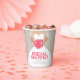 Elégante robe nuptiale avec poy rose stylisé rose floral et gris coeur pluie nuptiale pot en papier jetable douche nuptiale. Éditez ces tasses avec votre propre nom de mariée à être. Idéal pour une fête de douche nuptiale et correspond à la robe bouquet rose roses mariage ensemble. © Art graphique et design original par Sarah Trett. www.mylittleedenweddings.com