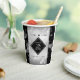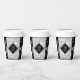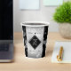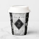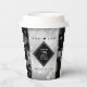 Célébrez le 25e anniversaire du mariage d'argent avec ces élégantes tasses en papier! Elégant lettrage noir et blanc avec des confettis hexagonaux sur une feuille d'argent arrière - plan ajouter une touche mémorable pour cette occasion spéciale et extraordinaire jalon. Personnalisez avec les noms du couple et les années de mariage. Reverse affiche un design identique. Design © W.H. Sim. Voir plus sur zazzle.com/expressionsoccasions