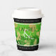 Célébrez le 66e anniversaire du mariage de titanite avec ces tasses en papier élégantes! Elégante écriture serif noir et blanc avec des confettis hexagonaux dorés sur un arrière - plan vert inde ajouter une touche mémorable pour cette occasion spéciale et une étape extraordinaire. Customisez avec les noms des couples, les années de mariage et les messages de félicitations. Reverse affiche un design identique. Design © W.H. Sim. Voir plus sur zazzle.com/expressionsoccasions