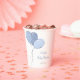 Complétez la fête du baby shower garçon avec ces coupes en papier bleu unique et élégante. Parfait pour les baby showers non sexistes aussi. L'illustration comporte trois ballons dans des tons bleus poussiéreux. Illustré et dessiné par Patricia Alvarez.