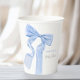 Servez des boissons dans le style avec ces élégantes tasses en papier baby shower bleu arc! Dotés d'un design délicat en ruban satiné et de teintes pastel douces, ces tasses jetables ajoutent une touche sophistiquée à votre célébration tout en faisant le nettoyage sans effort. Parfait pour un thème de baby shower magnifiquement coordonné !