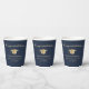 Gobelets En Papier Élégant Casquette Bleu Gold Graduation Party
