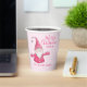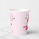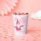 Faites des tasses de papier de Noël personnalisées roses uniques pour votre fête de famille avec un design élégant qui comprend un joyeux dicton de Noël, gnome gai en rose et modèles de texte pour l'année et nom de famille.