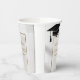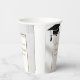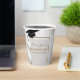 Celebrate your graduate's big achievement with these sophisticated and customizable graduation party paper cups. Perfect for a class of 20XX celebration, these cups feature a classic black mortarboard cap design positioned above a refined gold geometric frame. Within the frame, the text reads "Emma Grace" in a gold script, followed by "CLASS OF 20XX" and "LINCOLN HIGH SCHOOL" in a matching gold serif font. All elements are set against a subtle light grey and white geometric tile pattern with a soft, light marble texture effect. These cups are ideal for serving hot or cold drinks at a high school or college graduation open house, party, or dinner. Fully customizable with your graduate's name and school details on Zazzle.