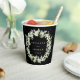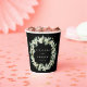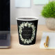 Élégantes tasses en papier personnalisées noires pour les célébrations mariages. Un design à double face, avec des neiges peintes à la main et des eucalyptus disposés en une belle couronne botanique. Tout le texte est entièrement modifiable de sorte que vous pouvez facilement modifier/supprimer le message sur un ou les deux côtés et modifier le style/la couleur/la taille de la police. Coordonner les éléments disponibles.