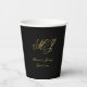 Gobelets En Papier Élégant Mariage de script de monogramme d'or noir