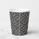 Ces tasses en papier ont un motif abstrait damassé noir et blanc élégant avec des rouleaux blancs fantaisie.