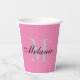 Gobelets En Papier Élégant nom rose pâle monogramme personnalisé