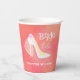 Le gobelet en papier pour l'enterrement de vie de jeune fille comporte un élégant talon haut blanc de future mariée avec un fond rose pêche.