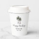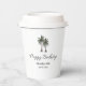 Tropical 30th birthday party paper cup, with a palm trees illustration and elegant script design. With customizable lettering, you add your own information. A fun way to add the beach to that special birthday celebration.