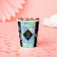 Célébrez le 24e anniversaire du mariage opal avec ces élégantes tasses en papier ! Un élégant lettrage noir et blanc avec des confettis hexagonaux sur un arrière - plan opal iridescent ajoute une touche mémorable pour cette occasion spéciale et un jalon extraordinaire. Personnalisez avec les noms du couple et les années de mariage. Reverse affiche un design identique. Design © W.H. Sim. Voir plus sur zazzle.com/expressionsoccasions