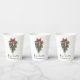 Élégante Calligraphie moderne Encre Script Aquarelle Pins Végétation hivernale avec Bow Rouge Bourgogne Ornements de Noël, cônes de pin et baies sèches Joyeuses tasses de papier de Noël