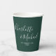 Élégante signature de mariage vert émeraude tasse en papier personnalisée avec les noms de style de signature et la date de votre mariage spécial. Conçue par Thisisnotme©