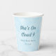 Elle est sur un nuage 9 Dreamy Sky Blue Baby Shower Gobelets en papier avec un fond étoilé.