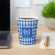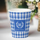 Gobelets En Papier En vichy monogramme bleu personnalisé