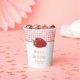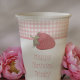 Ces tasses en papier sont prêtes à être customisées avec vos propres messages avec un spot pour ajouter un message sur le devant et sur le dos. Elles présentent une bordure de en vichy rose accentuée de fraises rouges mûres. Vos messages apparaissent dans la coordination des lettres roses.