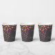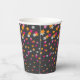Cette tasse de papier d'anniversaire pour enfant présente un thème Twinkle Twinkle Little Star avec un arrière - plan de tableau noir gris foncé et des étoiles rose, orange et argent brillant.