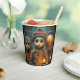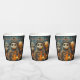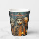 Gobelets en papier d'Halloween avec des enfants étranges et effrayants. L'un ressemble à une poupée en porcelaine avec des fissures, des cicatrices et des yeux effrayants, il y a une bête squelette et un garçon bizarre qui ressemble également à une poupée en porcelaine effrayante, avec des pointes, des cicatrices et des yeux saillants effrayants. Sont-ils déguisés ou des êtres d'un château sombre et maléfique ?