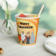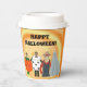 Joli et amusant, les enfants en costumes, devant un tourbillon orange et jaune, sont imprimés sur des tasses en papier sur mesure. Le texte, Happy Halloween, est écrit en script eyeball, et peut être customisé. Assurez-vous de customiser les deux côtés. Merci pour faire du shopping à CherylsArt sur Zazzle.