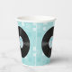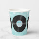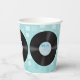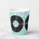 Coupes en papier style rétro des années 50 amusantes, avec des graphiques de disques vinyles, contre un arrière - plan motif bleu clair. Des produits papier correspondants sont disponibles.