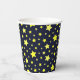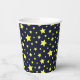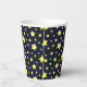 Tasses en papier avec un motif étoilé jaune contre un arrière - plan central bleu foncé. Ils fabriquent de grandes tasses pour n'importe quelle fête. Pour ajouter du texte, cliquez sur personnaliser. *Veuillez noter que le filigrane Zazzle qui apparaît dans l'aperçu du zoom n'apparaîtra PAS sur le produit imprimé final. © Bois de rose et agrumes