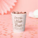 Personnalisez ces gobelets en papier rose et marron avec le nom de la future mariée et les informations sur l'événement comme "week-end d'enterrement de vie de jeune fille" ainsi qu'un lieu ou une date et placez-les sur les couverts, remplissez-les de friandises, ou décorez le bar et commencez le Nash Bash comme il se doit. Les étoiles rétro occidentales kitch et le texte coordonnent avec n'importe quelle fille de la semaine de la cowgirl en diamant à Nashville ou une fête d'enterrement de vie de jeune fille sur le thème chez soi.
