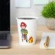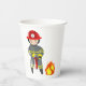 Un pompier éteint un incendie avec un extincteur. Cette conception semble vraiment efficace sur ces tasses de papier